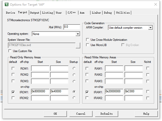 user application程序要设置程序的起始地址,与IAP程序里的起始地址要一致,如下图