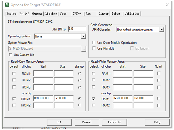 keil软件程序存储区正常设置如下