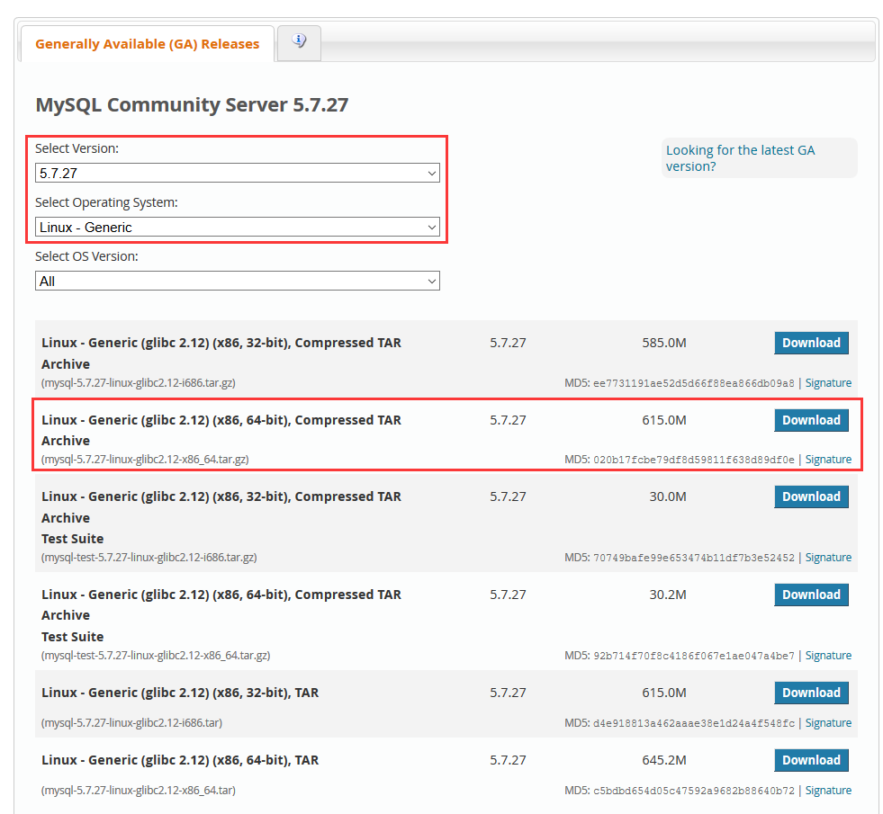 tar -zxvf mysql-5.7.27-linux-glibc2.12-x86_64.tar.gz
