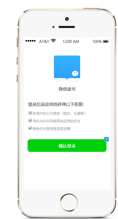 在APP登录页面选择“微信登录”后跳转到微信进行授权的页面,如下图所示: