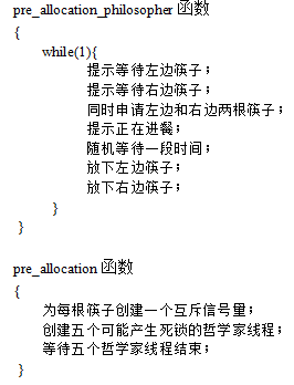 下面给出预分配法函数pre _allocation_philosopher和初始化函数pre_allocation的算法描述。