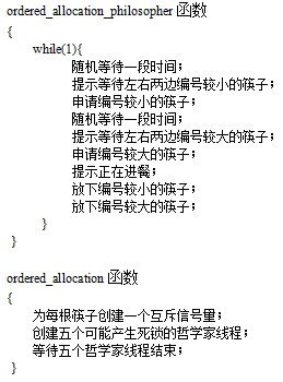 通过按序分配法防止死锁的哲学家线程函数 初始化函数:创建五个哲学家并等待它们结束 |