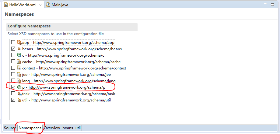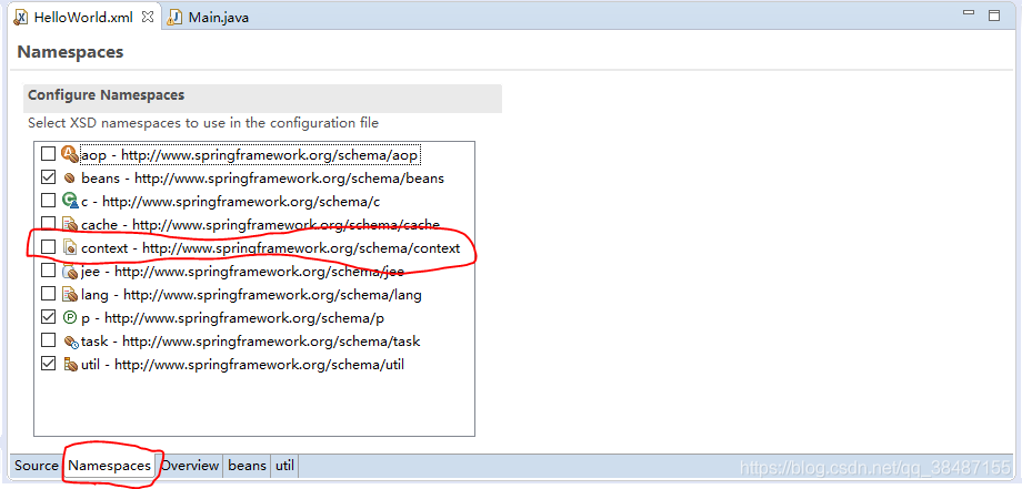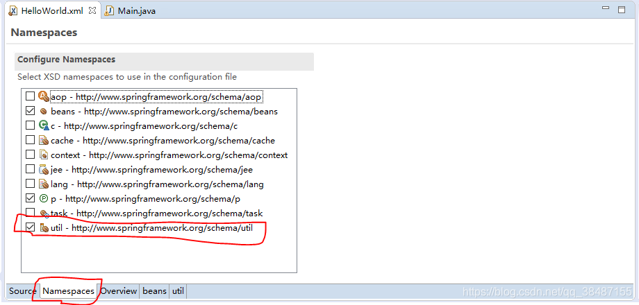 2、添加外部集合标签(与<bean>同级),在xml的<beans>里添加如下属性