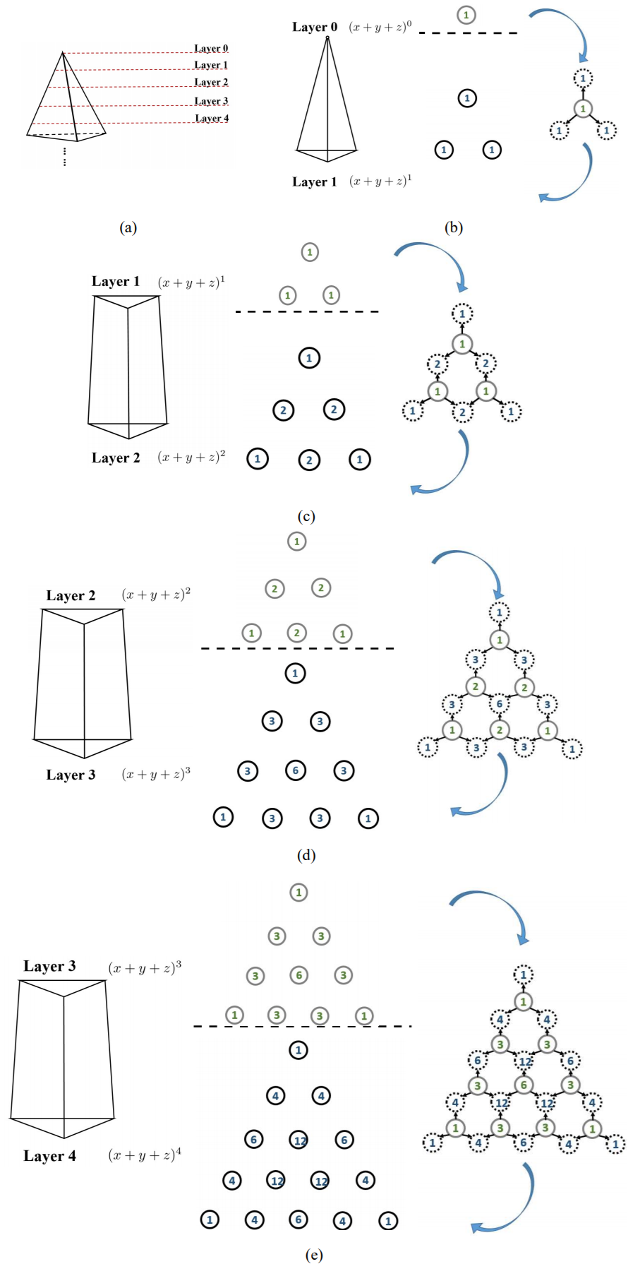 思路:找规律。每一个结点都是由上一个图中三个结点的相加而来。直接打表求解即可。