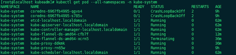 执行完后查看,coredns一直处于CrashLoopBackOff状态