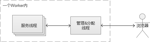 worker模式比起prefork,是使用了多进程和多线程的混合模式。它也预先fork了几个子进程(数量很少),然后每个子进程创建一些线程(其中包括一个监听线程)。每个请求过来,会被分配到1个线程来服务。线程比起进程会更轻量,因为线程通常会共享父进程的内存空间,因此,内存的占用会减少一些。在高并发的场景下,因为比起prefork更省内存,因此会有更多的可用线程。