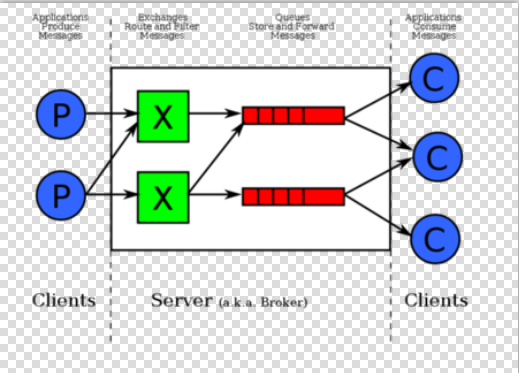 中间即是 RabbitMQ,其中包括了交换机和队列。
