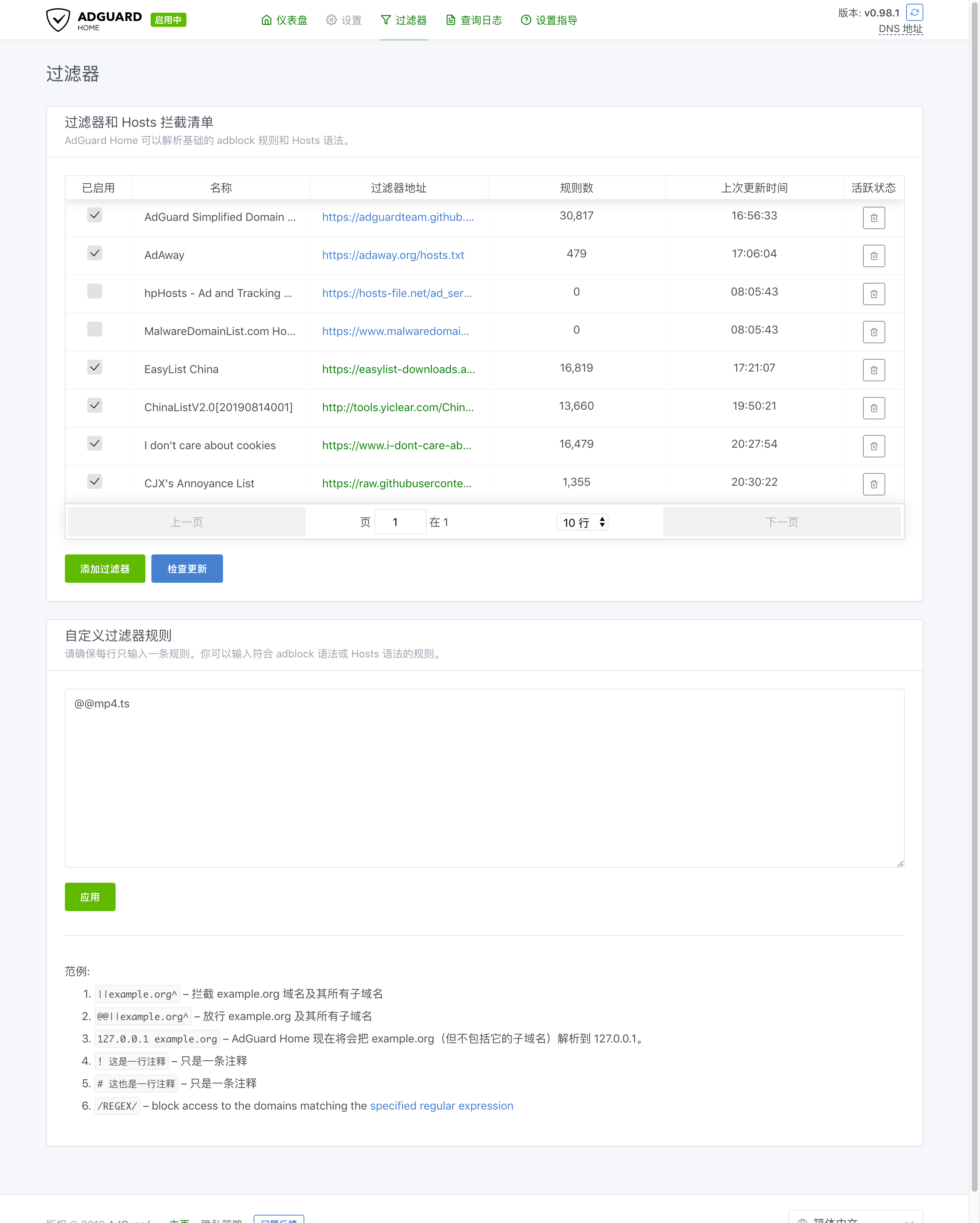 默认的配置比较简单,为了更强力地拦截广告,我们可以对配置进行优化。