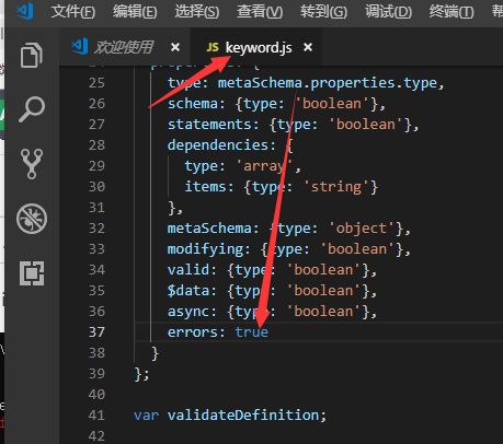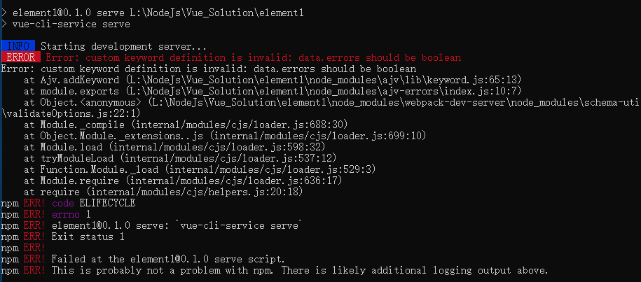 一、 Error: custom keyword definition is invalid: data.errors should be boolean