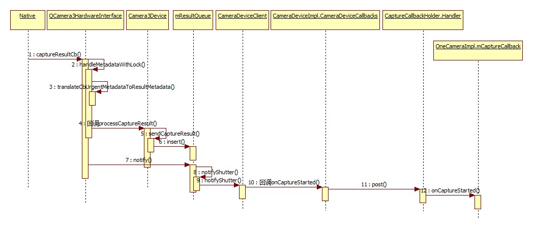 最后,它将Capture Result插入了结果队列,并释放了结果的信号量,所以到这里,Capture Result处理成功,下面分析前面的notify发送CAMERA3_MSG_SHUTTER消息:
