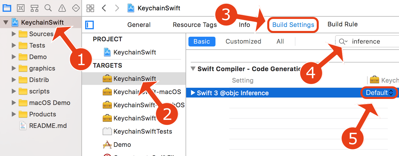 - Enable "Swift 3 @objc Inference" (only works if you migrated an existing project from Swift 3)
