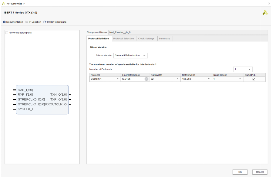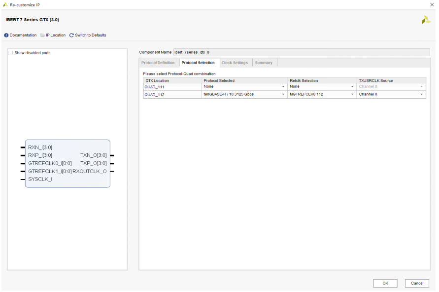 点击OK,完成IBERT IP核配置。