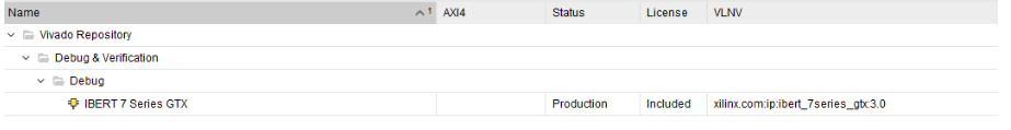 在vivado中找到IBERT 7 Series GTX这个IP核。