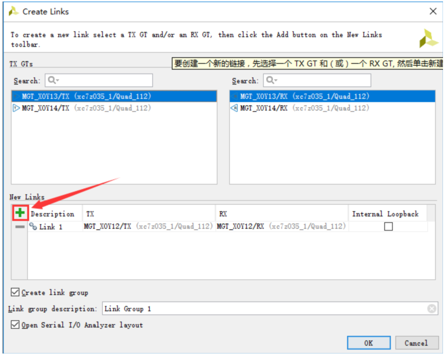 然后,将同1个GTX对应的TX和RX建立link,如下图所示。