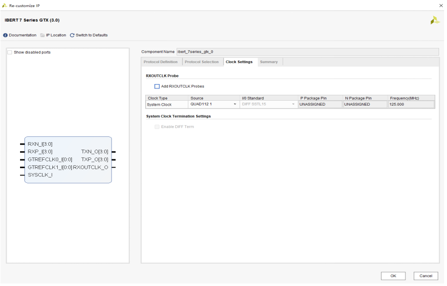 不妨将GTX输入的125MHz的时钟同时作为IBERT内部逻辑的工作时钟,这样就可以不使用额
