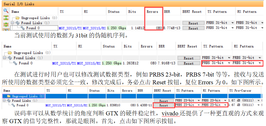 IBERT的example design稍作修改就可以直接使用对GTX进行测试。