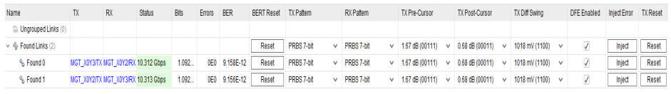 IBERT 10.3125Gbps传输设置如下: