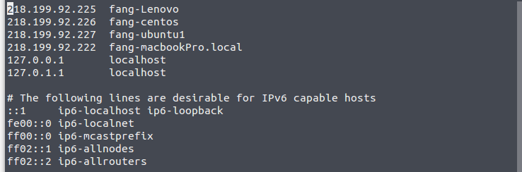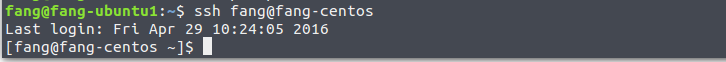 配置之后ping一下各机器名称检查是否生效,例如ssh fang@fang-centos。