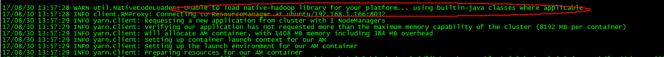 部署结束后,提交spark工程,提示使用内置hadoop