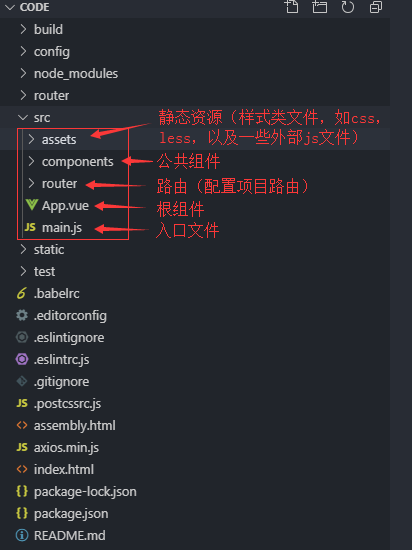 - config,vue基本(本地与线上环境)配置文件(可以配置监听端口,打包输出等)
