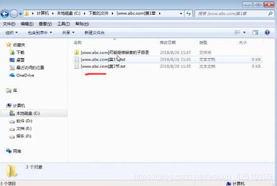 在服务器C盘下,创建如下所示的目录结构(类似的结果也可以,用于删除广告词测试),