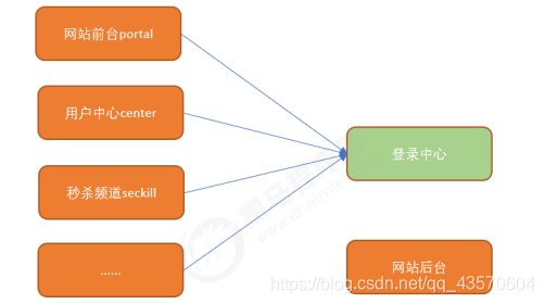 - 当我们访问其中一个前台系统需要登录才可以访问的页面时,自动跳转到登录中心进行登录,登录后再次跳转回该前台系统,该前台系统可以获取登录名。