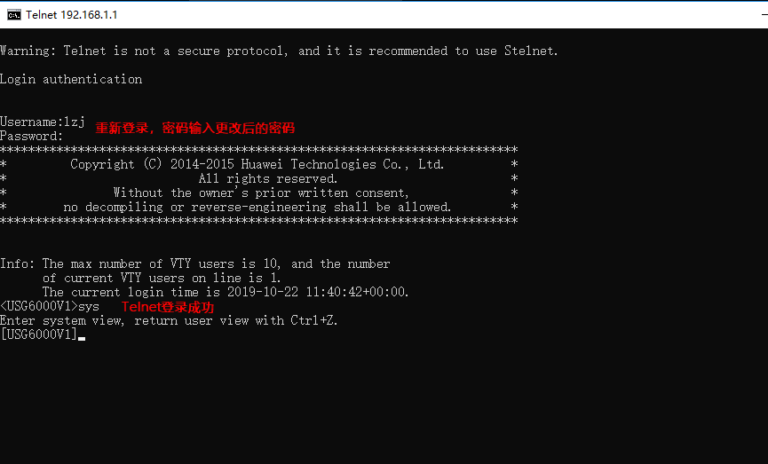[USG6000V1-ui-vty0-4]protocol inbound telnet