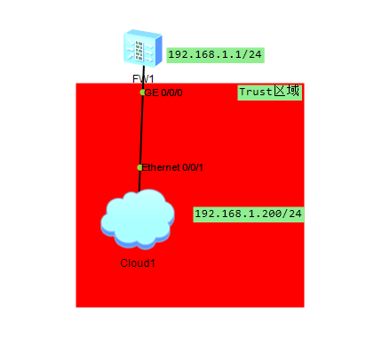 Telnet管理方式通过配置使终端通过Telnet方式登录设备,实现对设备的配置和管理。其实这种环境拓补只需一个防火墙(版本为USG6000)和Cloud(主要是为了可以桥接到宿主机或虚拟机)即可,实验拓补如下: