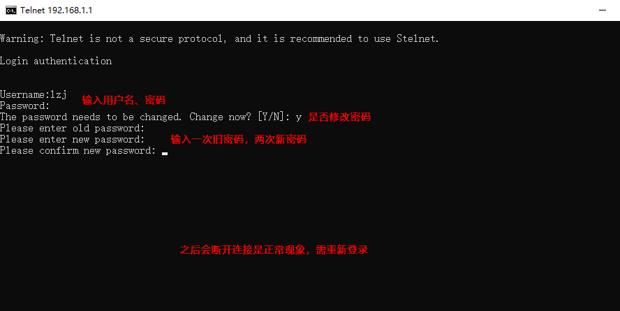 - 通过Telnet方式管理:属于带内管理,配置简单、安全性低、资源占用少,主要适用于安全性不高的场景。比如:公司内部;