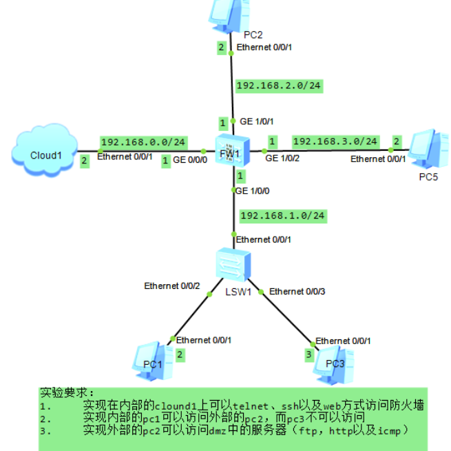 DMZ区域:非军事化区域,一般公司的web网站和ftp服务器都放在这个区域,其安全性介于Trust区域和Untrue区域之间,优先级为50,安全级别中等。