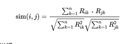 接下来就是如何两两计算物品的相似度了,一般选择余弦相似度,当然还有其他的相似度计算法方法。计算公式如下: