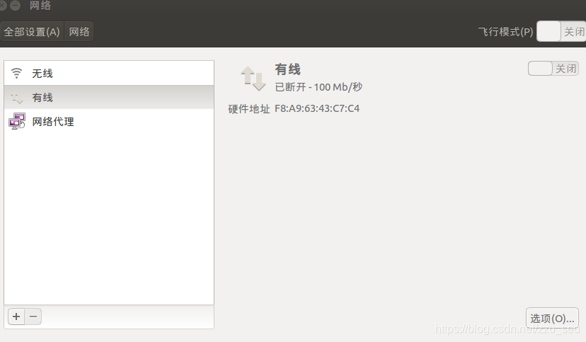 2.点击有线,然后点击右下角的选项。