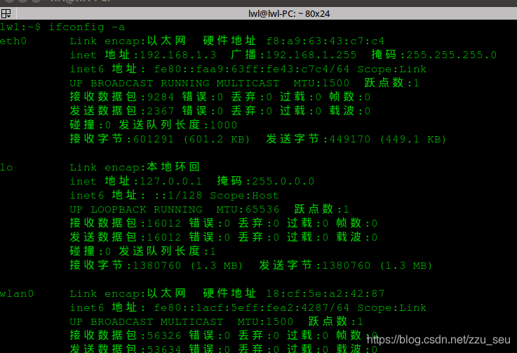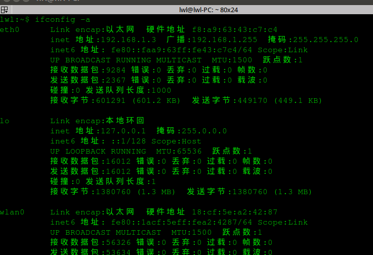 输入命令: ifconfig -a