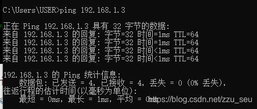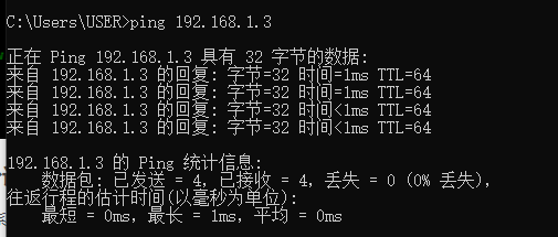 在windows系统下打开命令行工具,ping一下Ubuntu设置的IP地址。