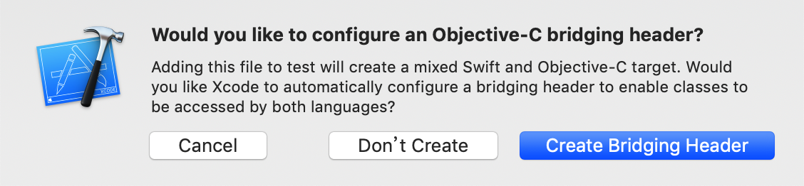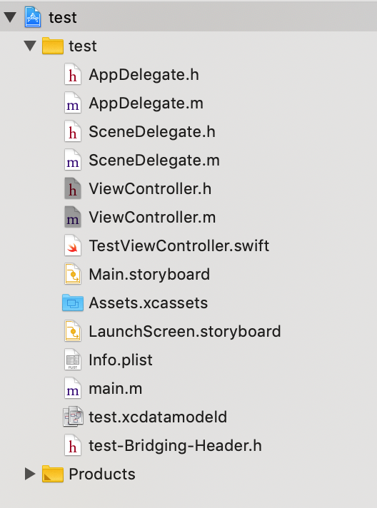 生产的test-Bridging-Header.h 为OC桥接文件 ,Xcode会自动配置