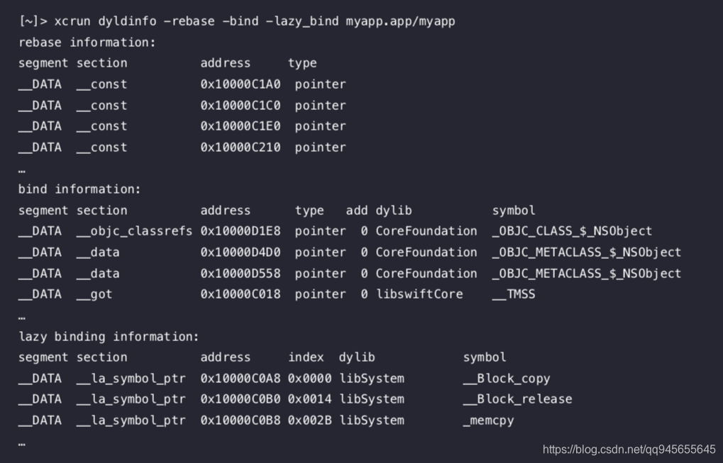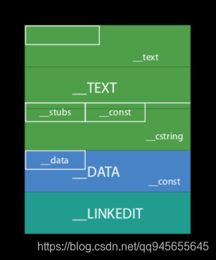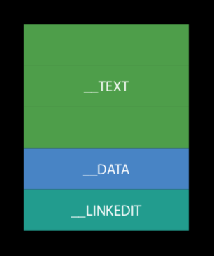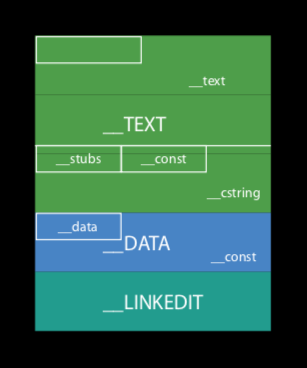 - __LINKEDIT,包含如何加载程序的元数据(方法名和地址等信息)
