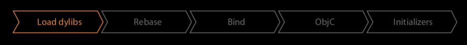 现在,dyld 在进程中运行。它的任务就是加载所有你依赖的 dylib,然后做好所有准备工作并开始运行程序。