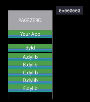 以前,dylib 会被加载到预定的内存地址。而现在,因为 ASLR 的存在 dylib 会被加载到随机的内存地址。