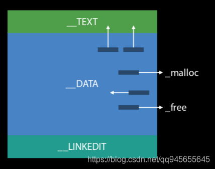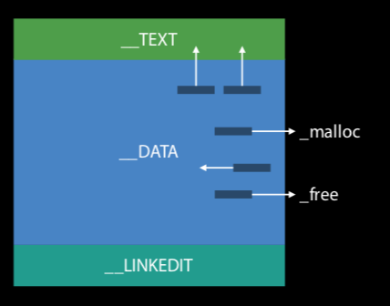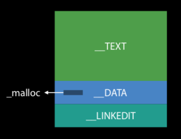 如果 __LINKEDIT 段中存储了 malloc,也就意味着数据指针需要指向 malloc。