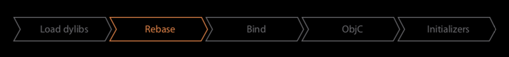 这些指针所在位置被编码并存储在 __LINKEDIT 段中,而进行变基操作需要读取所有的 __DATA 页。