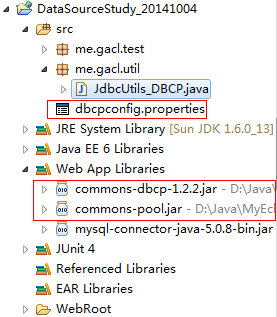 2、在类目录下加入dbcp的配置文件:dbcpconfig.properties