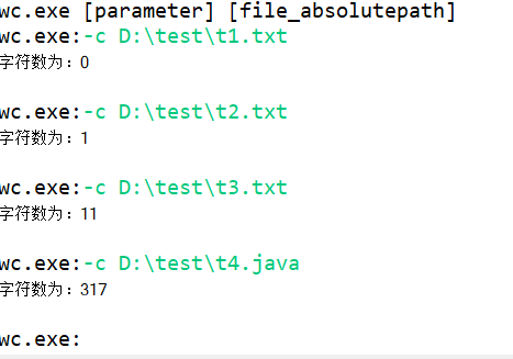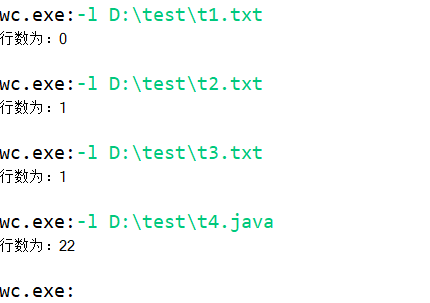 分别测试的是空文件,一个字符文件,一行字符的文件,以及一个源程序文件