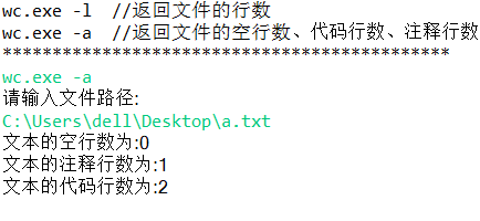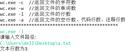 System.out.println("wc.exe -a //返回文件的空行数、代码行数、注释行数");