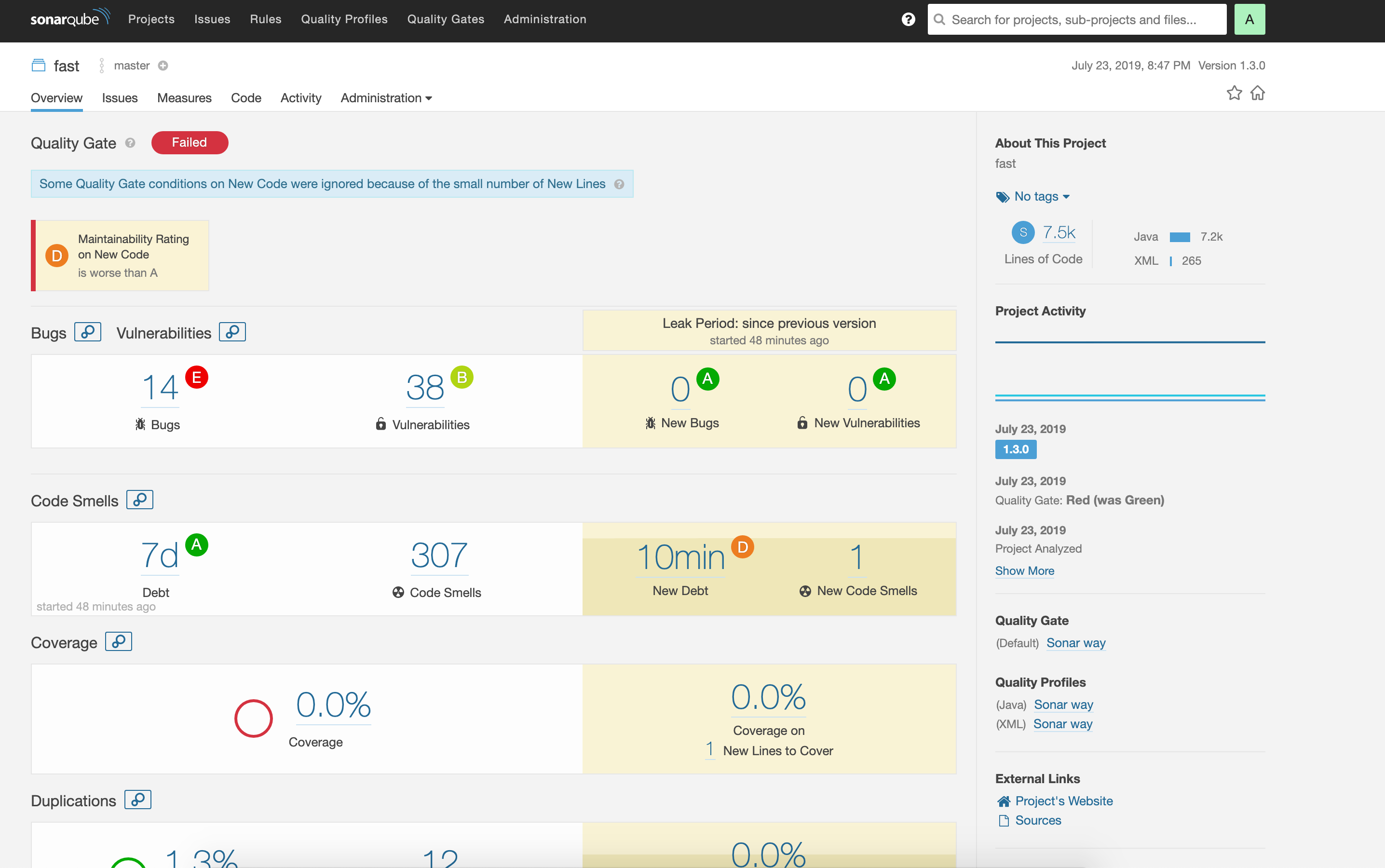 Sonar可以从以下七个维度检测代码质量,而作为开发人员至少需要处理前5种代码质量问题。