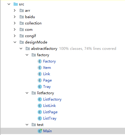 我们将类分成三个部分,这样思路更加清晰,第一部分是抽象工厂中的类,第二部分是具体实现的具体工厂类,第三部分是测试使用的Main类。