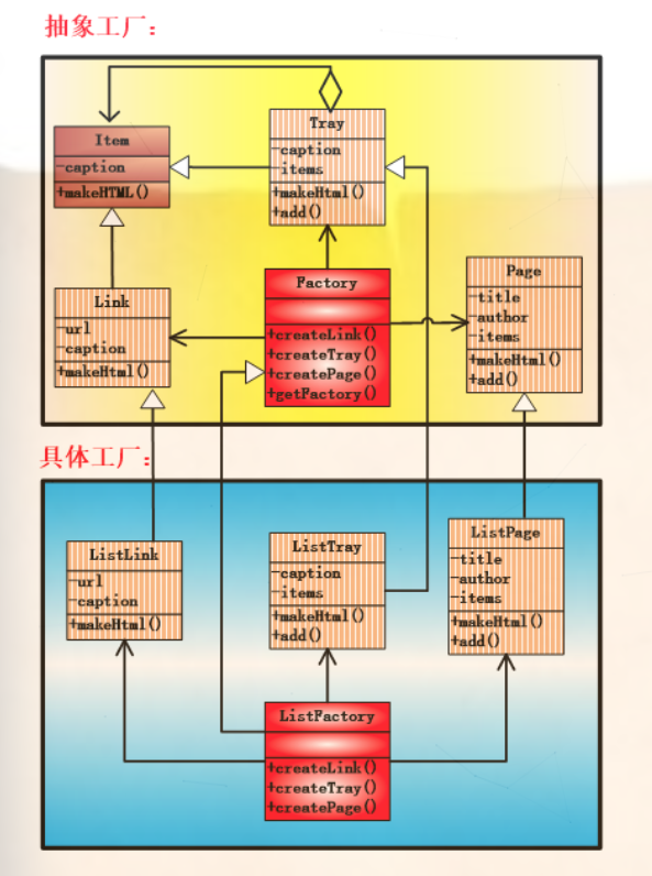 上面的抽象部分,最重要的就是抽象的工厂类(Link)、抽象的零件类(Tray)、抽象的产品类(Page),这两个零件有共同之处,因此通过item类进行抽象便于两者之间的互通。下面的具体实现部分即使对抽象的实现了,之后我们使用main类来进行整合,可以发现我们只用对抽象类进行编程,完全不用使用任何的具体类就能实现我们想要的功能,甚至导致编译器在编译的时候还需要指出需要编译的具体类,因为我们使用了Class.forName()方法实现了反射。这样的结构看似非常的庞大,其实仔细的推敲,反而妙趣横生,当我们还想创建一个具体的工厂的时候实在是太简单了,原来抽象工厂的代码都不用修改,只用按照响应的抽象实现就可以了,之后我们就可以直接使用了,只用在main中将Class.forName()所指定的类改一下就可以了,非常的方便。凡是有利就有弊,如果我们对抽象工厂中的某些定义不满意了呢,这个时候如果我们对抽象方法进行一定的调整和更改(增加或删除),那么所有实现了该抽象工厂的具体工厂的类都需要进行修改,如果有100个具体工厂,无疑是非常可怕的,因此我们应该理智的取舍,废话少说,让我们看一下代码。
