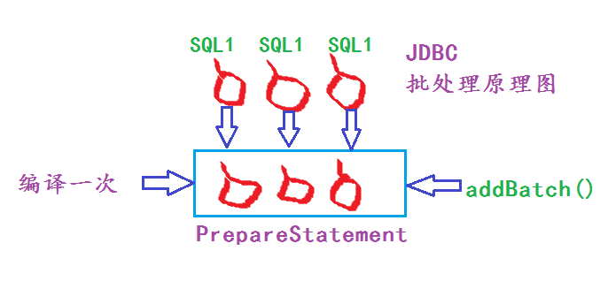 JDBC中PrepareStatement的批处理原理图。