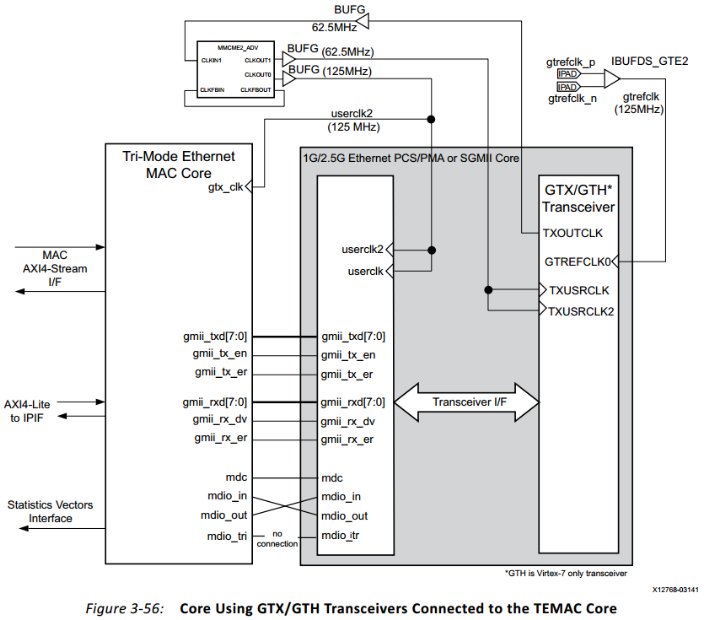 3.4.4 Tri Mode Ethernet MAC与1G/2.5G Ethernet PCS/PMA or SGMII的连接