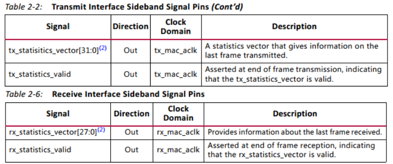 下图中的信号,用于统计并输出当前发送完毕或者接收完毕的帧对应的各种类型的信息。除了调试用之外,一般无需使用。