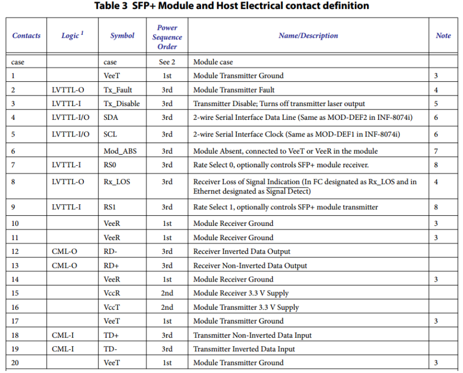 开发板上有4个SFP屏蔽笼。SFP屏蔽笼可以插入千兆。SFP信号定义如下图所示。